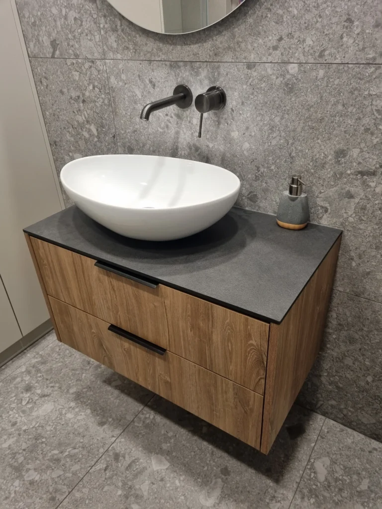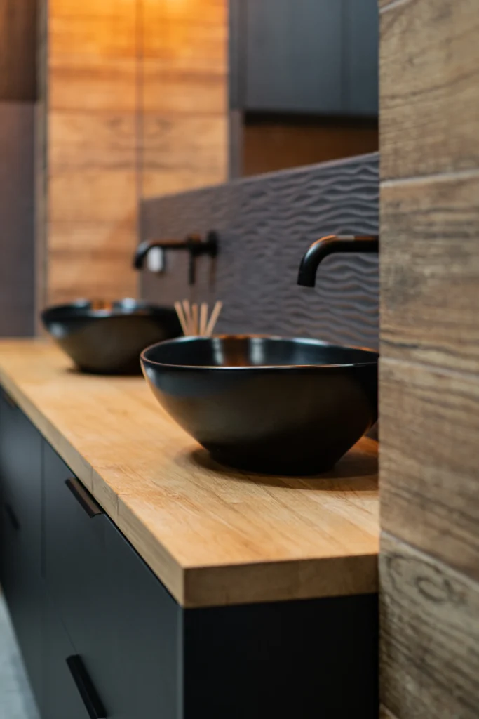 Projektując meble łazienkowe pamiętamy o warunkach w jakich przyjdzie im pracować. Wilgoć, ryzyko zalania – to prawdziwy poligon dla precyzji pracy stolarza.
