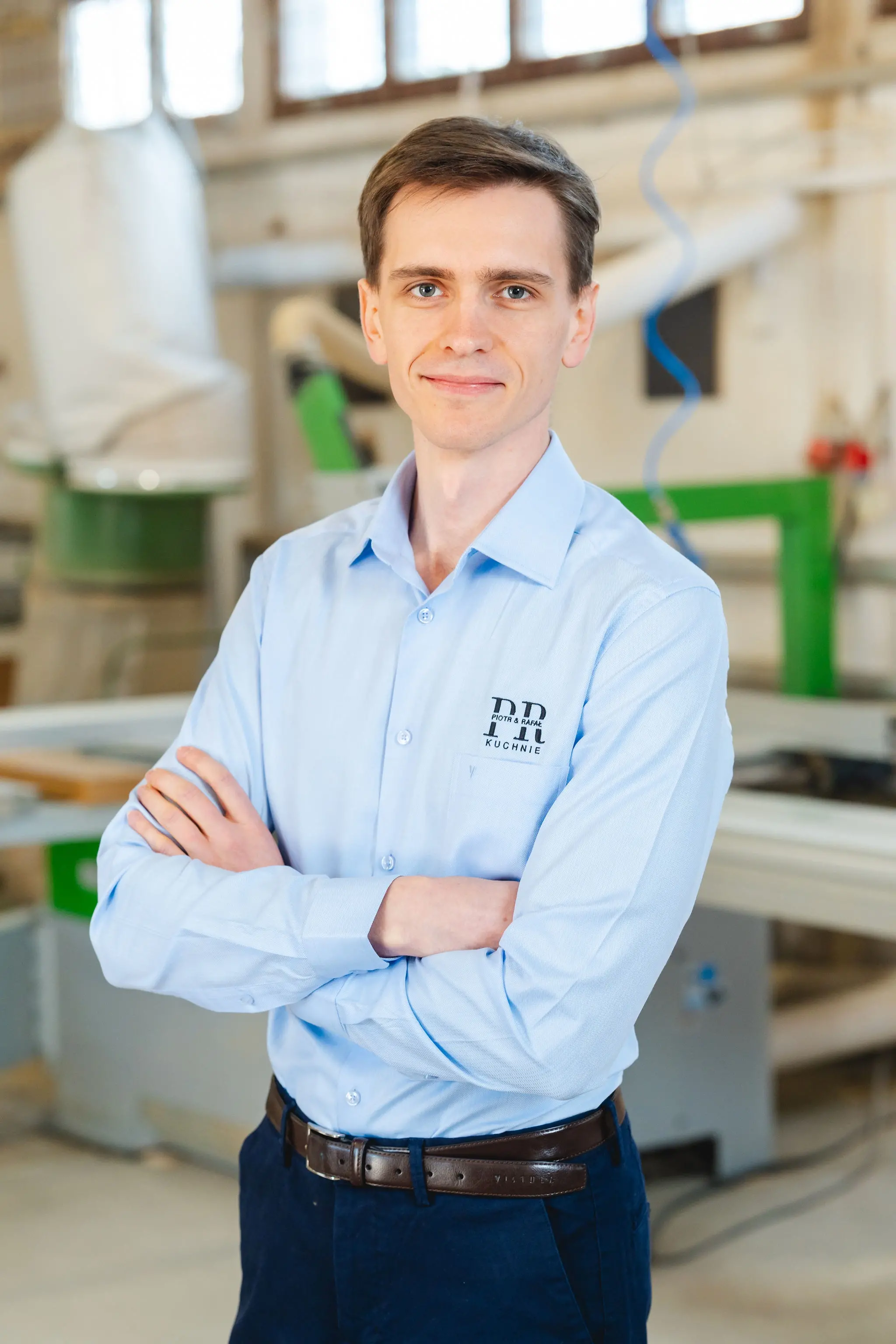 Mistrz gry na fortepianie, który zamiast klawiszy, pokochał słoje drewna. Z wirtuozerską precyzją, której nauczył się w Akademii Muzycznej, zaczął tworzyć meble. Razem z Piotrem założył Gudyka Meble, a dziś czuwa nad każdym detalem w Piotr & Rafał Kuchnie.